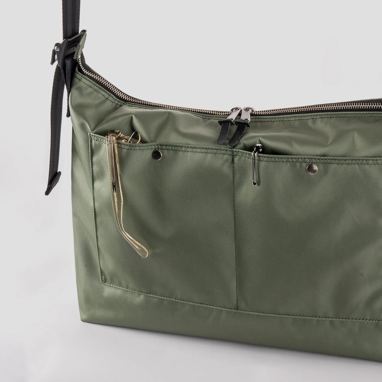 - 외부 후면 보조 포켓(스냅 클로징)
